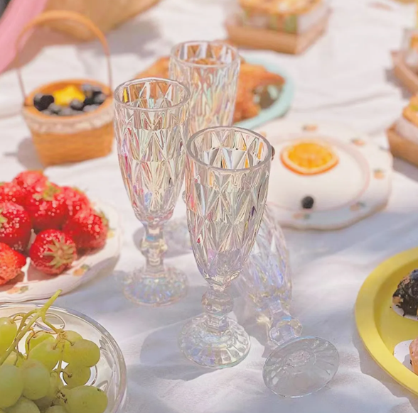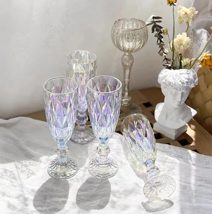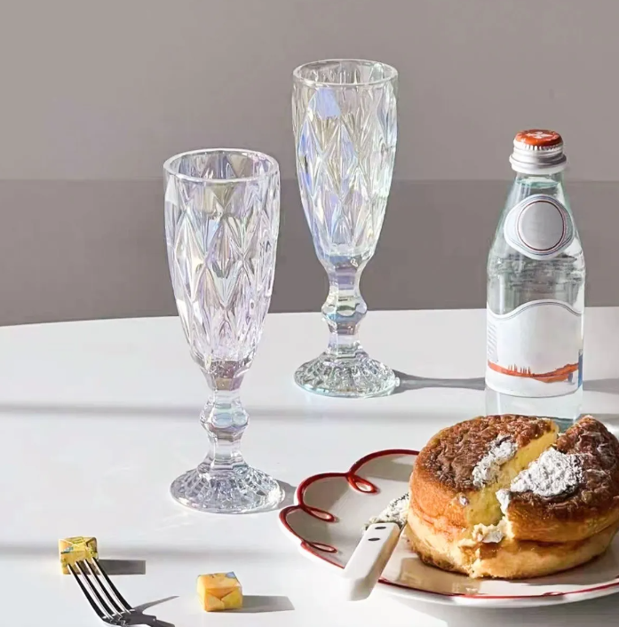 Lindo set de copas vintage de vidrio tallado para espumante, champagne, pisco sour o tragos preparados.